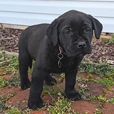 "Charlie" is the foundation of our Second Generation Mastador breeding program (Mastadors bred to Mastadors, rather than Labs bred to Mastiffs) His mother is an AKC registered black English Labrador Retriever and his dad is an AKC registered fawn English Mastiff. He was born in April 2015. Charlie weighs about 125 lbs.