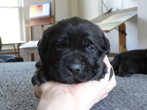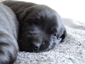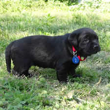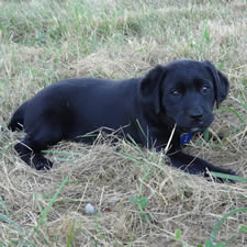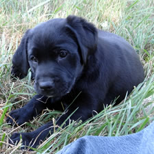 and an unintended sire that we have dubbed "The Wandering Minstrel". Emma was adopted out because of infertility, with a spay agreement. She had never had a litter before this. But before the spay happened, Emma was visited by a handsome black Lab from her new neighborhood. As a result, we brought Emma back to the farm for her whelping, and to care for and place all the puppies.
